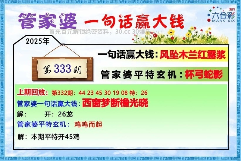 | 333期 | 鸡肖 | 红双 | 7尾 | 2头 | 鼠06 |