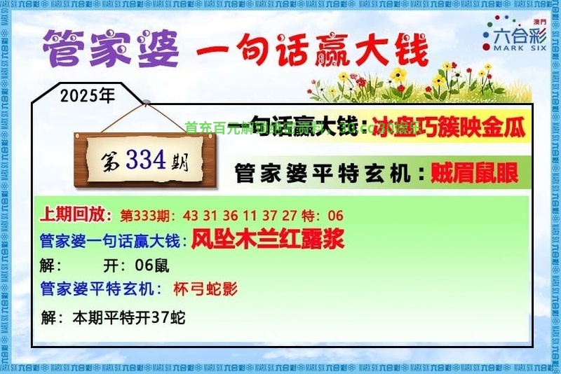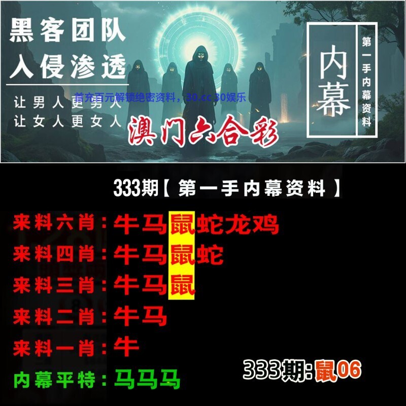 | 333期:⑨码 | 06.05.46.15.02.16.37.43.12 | 结果:鼠06 |
