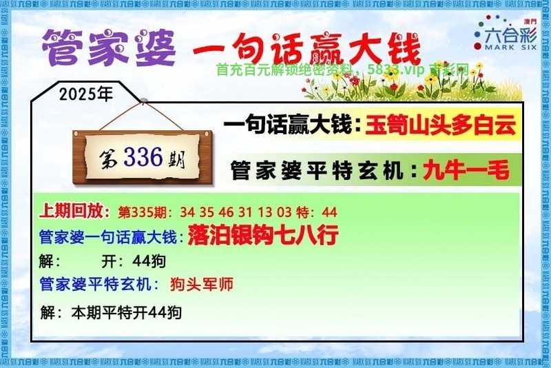 | 336期:【家禽】主【狗羊鸡】开:牛17准 主博⑥码【08.44.23.35.33.45】 |